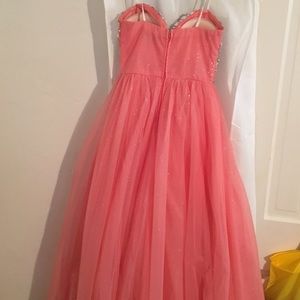 Coral sweetheart neckline dress, ball gown , 5 layers, bedazzled top