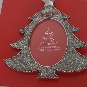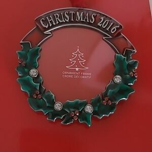 Set of two Studio Decor Christmas ornament frames. Includes a silver tree and a green wreath design.