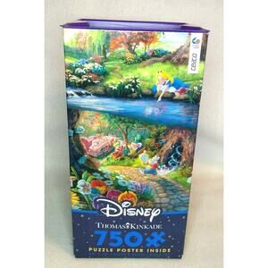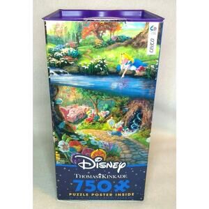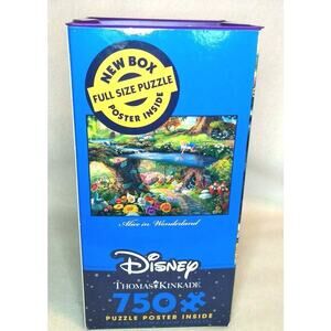 This is a Thomas Kinkade 750 piece puzzle. Item # 2903-14. It was manufactured in the U.S.A. in 2016 by Ceaco. It features Disney's Alice In Wonderland. The puzzle is 24" X 18" and a puzzle poster is included. It is recommended for ages 12+. It is sealed brand new in the original packaging. The box itself shows very little shelf wear. I have captured the overall condition and a few tiny flaws to the box in the photos. I think it would make a great gift for any puzzle or Disney lover. But what you see is what you get, so look at the pictures and judge for yourself. I want all my buyers to be satisfied customers. Comes from a smoke-free home. I try to be as honest as possible while describing the condition of my items. You are buying this item(s) AS-IS. Please look carefully at all pictures as they are part of the condition description and ask any questions before purchasing.