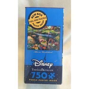 This is a Thomas Kinkade 750 piece puzzle. Item # 2903-14. It was manufactured in the U.S.A. in 2016 by Ceaco. It features Disney's Alice In Wonderland. The puzzle is 24" X 18" and a puzzle poster is included. It is recommended for ages 12+. It is sealed brand new in the original packaging. The box itself shows some shelf wear. I have captured the overall condition and a few tiny flaws to the box in the photos. I think it would make a great gift for any puzzle or Disney lover. But what you see is what you get, so look at the pictures and judge for yourself. I want all my buyers to be satisfied customers. Comes from a smoke-free home. I try to be as honest as possible while describing the condition of my items. You are buying this item(s) AS-IS. Please look carefully at all pictures as they are part of the condition description and ask any questions before purchasing.
