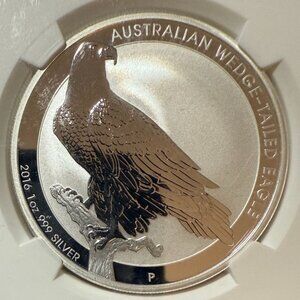 2016-P Australia Silver $1 Wedge-Tailed Eagle Coin GemBU NGC. Perth Mint. Uncirculated Coin GemBU NGC silver .9999. 2 lots available