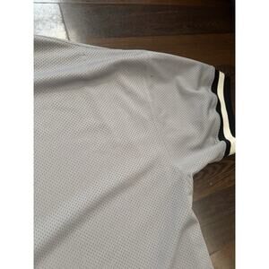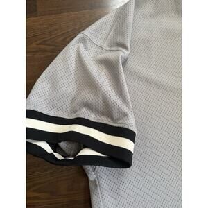 The "Fear of God Baseball T-shirt" in size XL is a vintage-inspired piece with a unique design featuring a mesh TAKUYA ∞ GREY pattern. Made of a combination of silk and polyester materials in a solid gray color, this button-up shirt is suitable for various occasions including travel, weddings, parties, casual wear, formal events, workwear, and business settings. The shirt has a short sleeve length, a jersey fabric type, and features accents like embroidery, making it a versatile and stylish addition to any man's wardrobe.