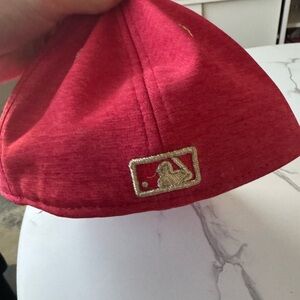 Stylish red baseball cap with gold accents, perfect for any casual outing.