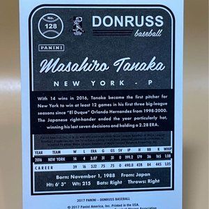 2017 Panini Donruss Gold Masahiro Tanaka Serial 59/99 New York Yankees Card #128