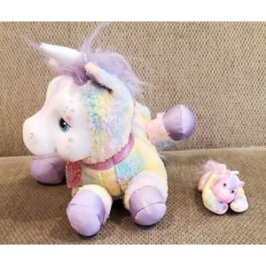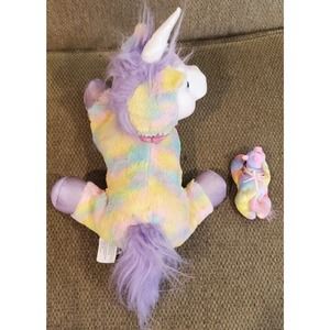 2017 Pastel Colored Unicorn Surprise with One Baby Stuffed Animal Plush Toy in good played with condition. There are markings on face of mother unicorn and discolorations on butt tags. See photos for details. POOS