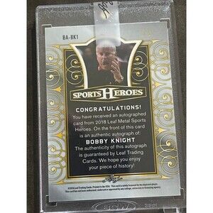 2018 Leaf Bobby Bob Knight 1/2 Red Wave Sports Heroes Autograph BA-BK1 Indiana