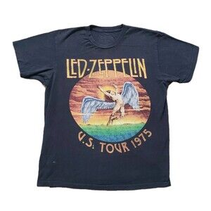 2018 Led Zeppelin US Tour 1975 Size Large Mens Distressed Black Angel T-Shirt
