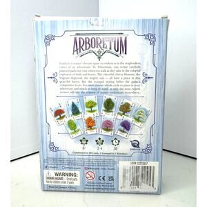 The game Arboretum is a strategic card game where players create paths through a garden using tree cards, and is known for its elegant rules and surprisingly complex choices, making it a challenging puzzle. The game involves hand management, set collection, and card placement for scoring points. The cards remain sealed; the game includes the rule book and score cards. The box shows signs of minor wear; unsealed to take photographs. Please review all photos, keeping in mind that lighting and color can vary from screen to screen, and make all inquiries before purchasing. Sold items ship within one (1) business day - unless I am dealing with a hurricane.