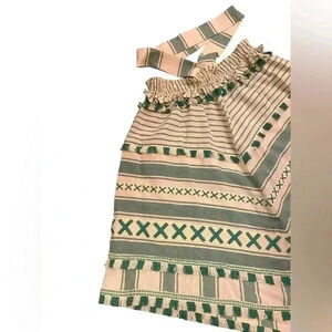 This piece is in excellent worn condition. No discoloration or staining. This is a very heavily embroidered piece and has very minimal lose threads. I thought this was a skirt and come to find out it’s a dress. From what I could find you can wear it as a top, skirt or dress.