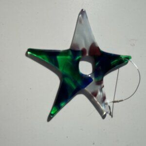 #2018 STAR MULTI COLOR 5 POINT ORNAMENT GREEN & WHITE FUSED SUN CATCHER COLLECTABLE ORNAMENT ELEGANT FUSED GLASS ORNAMENT