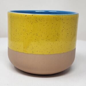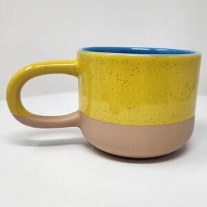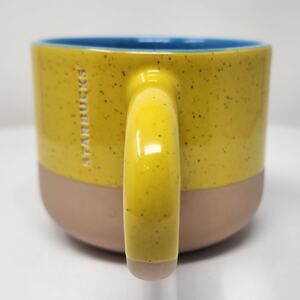 2018 Starbucks Terra Cotta Two-Tone Long Handle Coffee Mug Yellow Blue Tan Speckled 12 oz.
