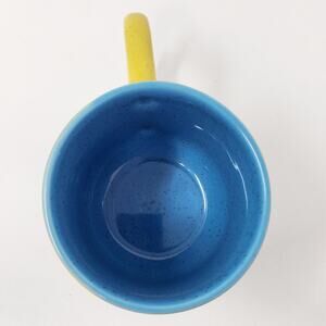 2018 Starbucks Terra Cotta Two-Tone Long Handle Coffee Mug Yellow Blue 12 oz.