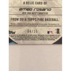 2018 Topps Fire RELIC sp PINK #fr-ar AMED ROSARIO Mets #04/25 Rookie RC (025)