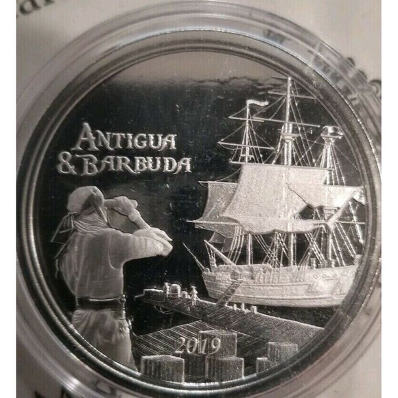 2019 Antigua & Barbuda 1 oz .999 Silver $2 Rum Runner Pirate ship Treasure