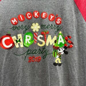 Unisex Disney Mickey Mouse Christmas party 2019 Raglan shirt size large excellent used condition no stains.