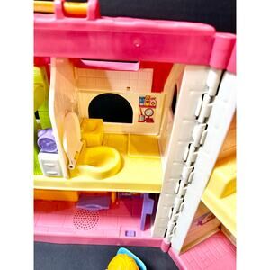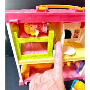 Includes living room, kitchen, bathroom, child’s and parents’ bedrooms all with built-in furniture & appliances, plus little people 3 figures & 2 chairs.