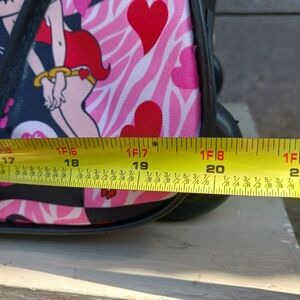 It's a pink, red and black color of Betty Boop style of roll away, travel bag. It's in brand new condition. See photos for condition and measurements