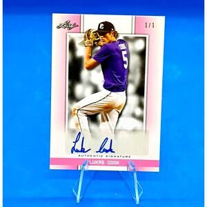 The 2019 Leaf Perfect Game National Showcase trading card featuring autograph of Lukas Cook is a highly collectible item with a print run of only 1. This rare card is a part of the Autographs insert set in the baseball category, manufactured by Leaf. With features like serial numbering, being a rookie card, and being a parallel/variety card (Pink), this card is a prized possession for any sports trading card enthusiast.