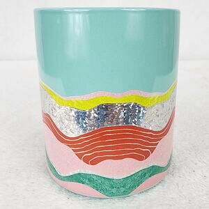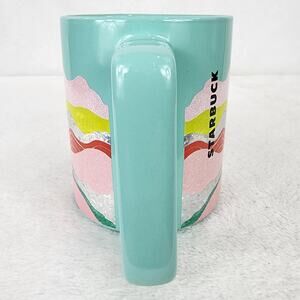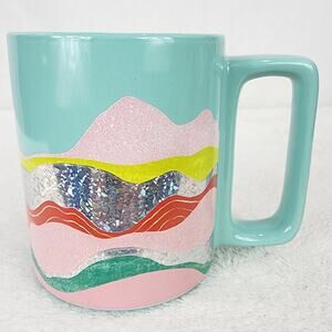 2019 Starbucks Mug Mountain Scene Turquoise Pink Silver Foil Sparkle 12 oz