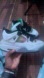 Jordan 4s with white base, and hints of grey, yellow,red, and green