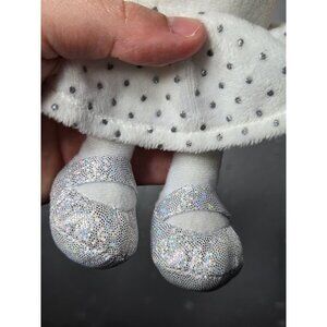 Sparkly Dress Shoes plush doll, baby toy, Baby Starters, sparkly dress, soft toy, decorative doll, baby gift, embroidered details, toddler toy, plush gift, nursery decor, soft doll, Joy doll security lovey plushie stuffie hang decor festive december present gift holiday white silver sparkle sparkly glitter glittery shine shiny polka dot princess ballerina girl kid child infant baby