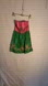 Chic mini skirt with vibrant pink and green hues. Features unique embroidered details. Perfect for a bold fashion statement.