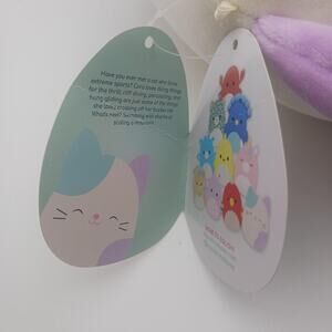 Cora the calico cat, a 2021 Squishmallow Baby with tags, 7.5"tall. Lavender, light blue and white. Excellent condition, like new.