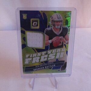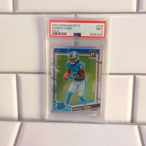 The product is a highly sought-after 2021 Panini Select Jalen Hurts Green Disco Prizm premier level trading card graded PSA 10. This card features a limited print run of only 5, making it a rare and valuable collectible for fans of the Philadelphia Eagles and football enthusiasts alike. With its serial numbering and premium features, this card is a standout addition to any sports trading card collection, celebrating the talent and achievements of the dynamic NFL quarterback.