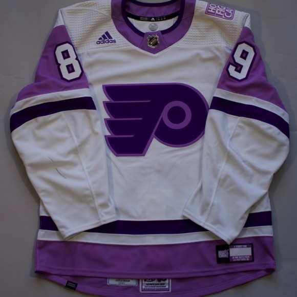 2021 Philadelphia Flyers Hockey Fights Cancer Cam Atkinson warm up worn jersey