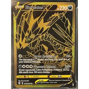 Graded GEM MINT 10 by Arena Club, this 2021 Eternatus V (#SV121) from the Sword & Shield Shining Fates Full Art set features a striking black-and-gold design with holographic elements.