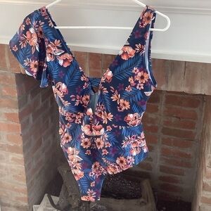 2021 Ruffle Print Floral Swimsuit Solid Deep-V Beachwear Monkini Medium