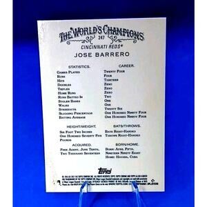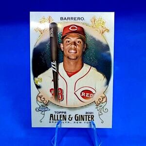 The product is a 2021 Topps Allen & Ginter Chrome trading card featuring Jose Barrero of the Cincinnati Reds. This original sports trading card is part of the baseball franchise and set, with a chrome finish giving it a unique look. The card showcases Barrero as a rookie player for the Reds, making it a desirable collectible for fans and collectors of baseball trading cards. With a standard card size of 3½" x 2½", this item is a valuable addition to any sports memorabilia collection.
