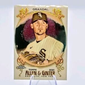 The product is a 2021 Topps Allen & Ginter's trading card featuring Yasmani Grandal of the Chicago White Sox. This sports trading card is manufactured by Topps and made of card stock and metal materials. It is part of the base set for the 2021 season of Major League Baseball, specifically designed for fans of the sport and collectors of trading cards. The card number is 298 and it is a part of the [Base] parallel/variety.