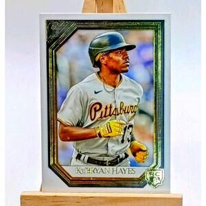 The product is a 2021 Topps Gallery trading card featuring Ke'Bryan Hayes, a rookie player for the Pittsburgh Pirates in Major League Baseball. This sports trading card is part of the base set for the 2021 Topps Gallery collection and is numbered 108. Manufactured by Topps, it showcases Ke'Bryan Hayes as a rookie player in the MLB, making it a desirable collectible for fans and collectors of baseball trading cards.