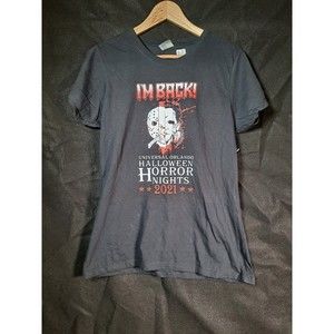 1 NWOT Womens Medium 2021 Universal Orlando Halloween Horror Nights TShirt with Michael Myers, Pennywise, Leather face and Jason.