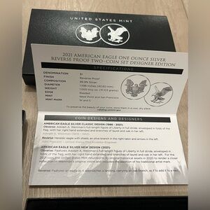 American Eagle 2021 One Ounce Silver Reverse Proof Two-Coin Set Designer Edition