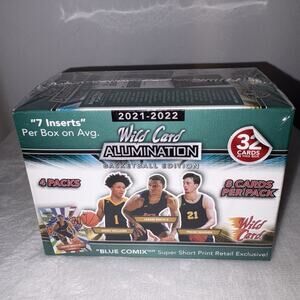 The 2021-22 Wild Card Allumination Basketball Edition Blaster Box is a factory-sealed box containing 32 basketball trading cards. Manufactured by Wild Card, this box is specifically for the 2021-22 season and features a green exterior color. Each card is an original release in English, making it a valuable addition to any basketball card collection. Perfect for fans and collectors alike, this product offers a unique and exciting way to enjoy the sport of basketball.