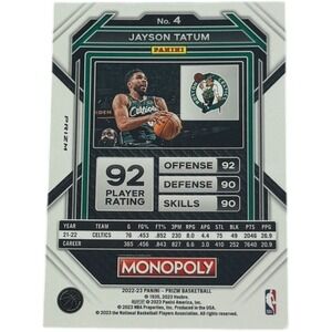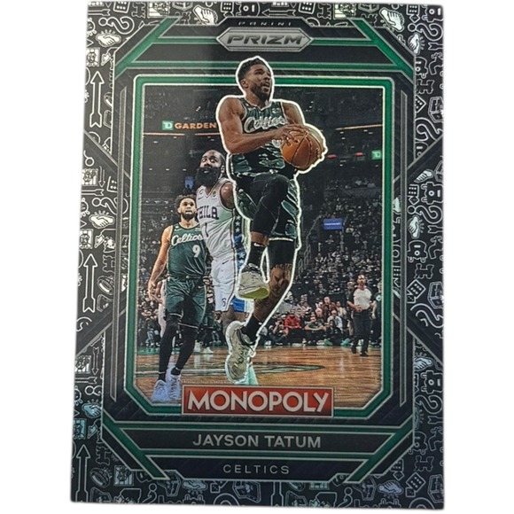 Keywords: Jayson Tatum card, Boston Celtics, Monopoly edition, NBA trading card, basketball memorabilia, sports card, collector card, rookie card, limited edition, Panini Prizm, basketball player, sports collectible