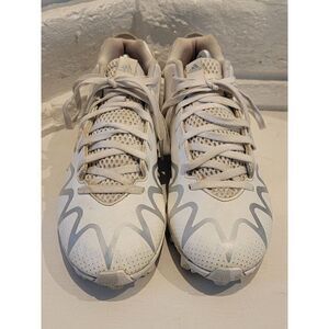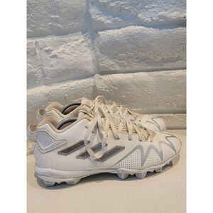 Pre-Owned 2022 Adidas Freak Spark Mid 'White Silver Metallic Camo' men's size 7. .Flaws- some dirt staining oon outsides- red staining inside lining of back heels see pictures above.