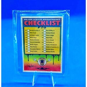 The 2022 Alex Pardee's MLB Brightmares Checklist #P70 A1 trading card is a unique and original piece featuring a checklist design in a baseball-themed set. Measuring 4¾" x 3½", this sports trading card is perfect for collectors and fans alike. This non-autographed card from the 2022 season is a must-have for any baseball enthusiast looking to add a special piece to their collection.