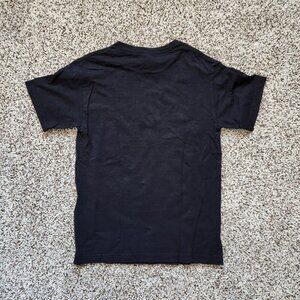The 2022 Bad Bunny Album Promo T-Shirt in size Small features a graphic print with the iconic Latin rapper's logo, perfect for fans of reggaeton and hip hop music. Made from comfortable cotton jersey fabric, this short sleeve tee is suitable for all seasons and is machine washable for easy care. The black shirt with a crew neck and regular fit is a stylish and fun addition to any wardrobe, representing the vibrant and unique style of Bad Bunny.