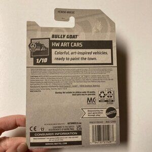 This Hot Wheels car is a must-have for any collector or enthusiast. The 1:10 scale Camaro model is part of the Hot Wheels Art Cars series, featuring the "Bully Goat" design. The diecast material and attention to detail make this a high-quality addition to any collection.
