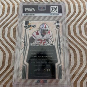 Showcase your collection with this 2022 Leaf Flash TreVeyon Henderson Pink Kaleidoscope Autograph, graded GEM MINT 10 for pristine condition and Auto 8 for a solid, clean signature.