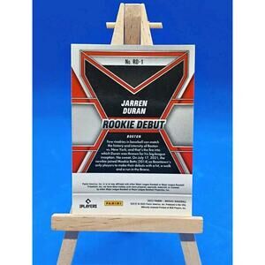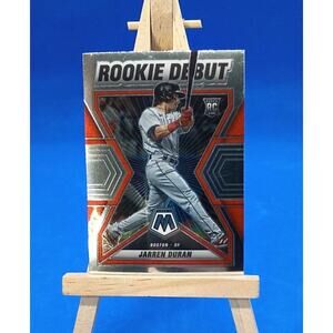 The 2022 Panini Mosaic Rookie Debut Jarren Duran #RD-1 trading card is a highly sought after collectible for baseball fans and card enthusiasts. This card features the talented rookie player Jarren Duran from the Boston Red Sox, making it a valuable addition to any sports trading card collection. Produced by the reputable manufacturer Panini, this card is part of the 2022 Mosaic set and showcases Duran's rookie debut in Major League Baseball, capturing a significant moment in his career. With its unique design and special features, this card is a must-have for fans of the sport and collectors alike.