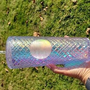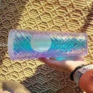 Cut diamond studded mermaid shimmer 24 ounce XL tumbler with screw top lid and textured swirl straw.
