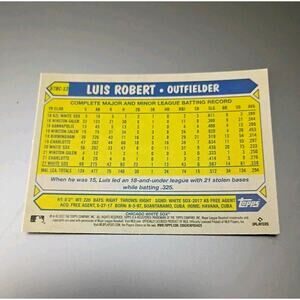 The product is a 2022 Topps Chrome trading card featuring Luis Robert of the Chicago White Sox from the 1987 Topps Baseball insert set. This card is a Rainbow Refractor parallel variety with card number 87BC-12. It is a collectible item for Major League Baseball fans and collectors, manufactured by Topps in 2022, made of chrome material. The card showcases the dynamic young player in a unique and eye-catching design that is sure to be a valuable addition to any sports trading card collection.