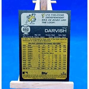 The product is a 2022 Topps Heritage Yu Darvish trading card featuring him as a member of the San Diego Padres. This baseball card is part of the MLB set manufactured by Topps Heritage for the 2022 season. The card number is 552 and it is a non-autographed, centered mint item that is perfect for collectors of sports trading cards. With its focus on a specific player and team, this card appeals to fans of Yu Darvish and the San Diego Padres looking to add a valuable piece to their collection.