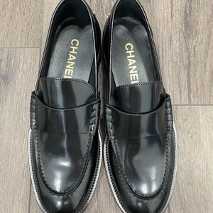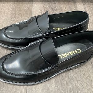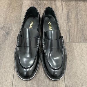 2023 CHANEL BLACK LEATHER LOAFERS OXFORD SHOES 38 NEW