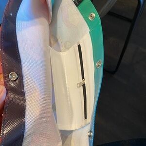 PLEASE NOTE: ONE SNAP to close the backpack is broken, however the backpack is still functional (notated in the photo)