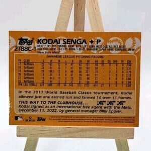 The product is a 2023 Topps Series 2 trading card featuring baseball player Kodai Senga from the New York Mets. This particular card is part of the 1988 Topps Chrome Silver Pack Mojo insert set, making it a unique and sought-after collectible for fans and collectors alike. The card number is 2T88C-1, and it showcases Senga as a rookie player in Major League Baseball, adding to its appeal and value in the sports trading card market.